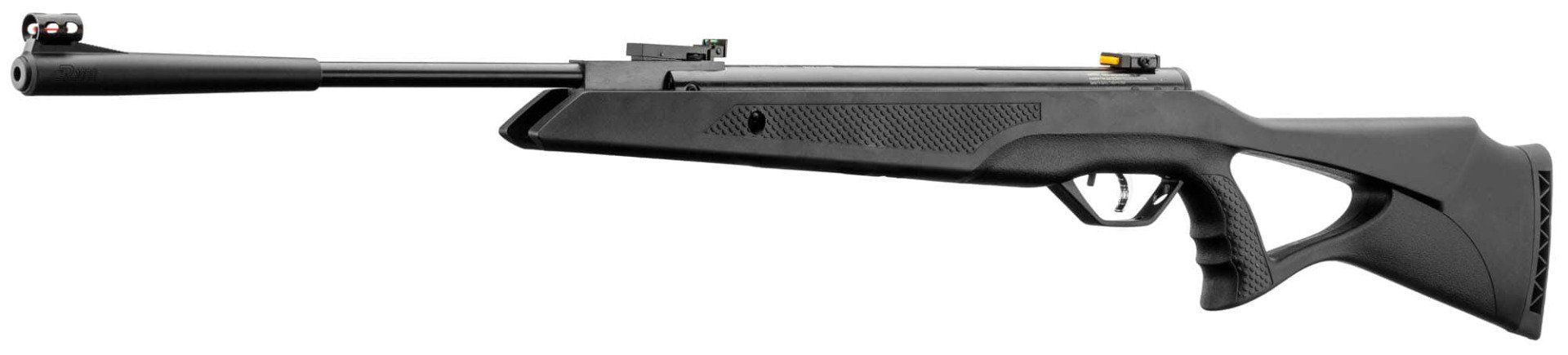 * Canon rayé en acier de 46 cm avec guidon fibre optique sous tunnel et hausse réglable.