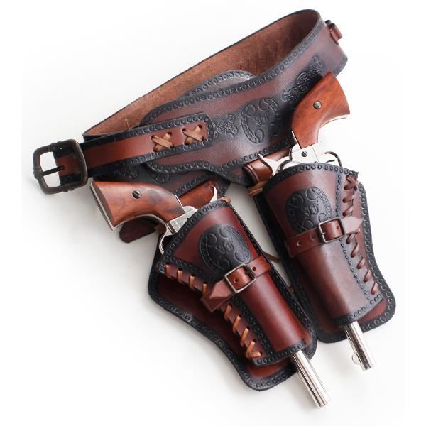Ceinturon double holster marron + balles pour 2 revolvers western