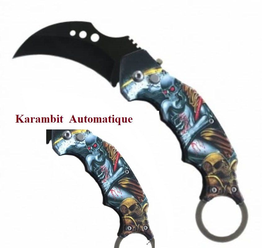 Couteau Pliant Karambit Skull gris et orange Lame de 7 cm