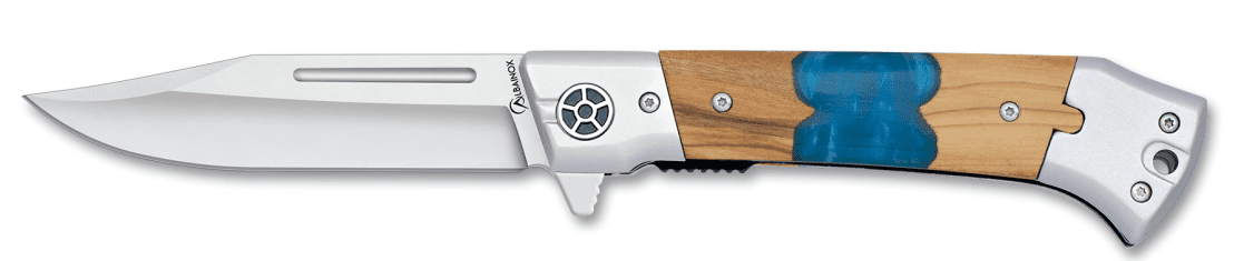 Couteau pliant manche courbé Bois et acrylique lame de 9.50 cm