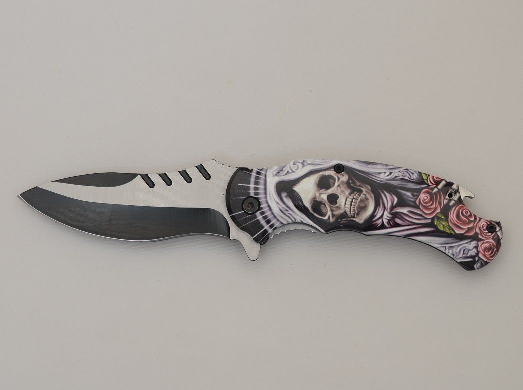 Couteau pliant Skull bouquet de rose lame de 9 cm