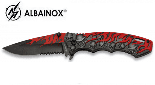 Couteau Pliant skull et flamme rouge Lame de 8.5 cm