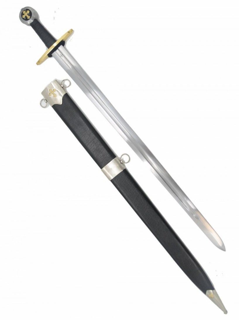 * Fourreau en bois recouvert de cuir noir hornée d’une croix doré