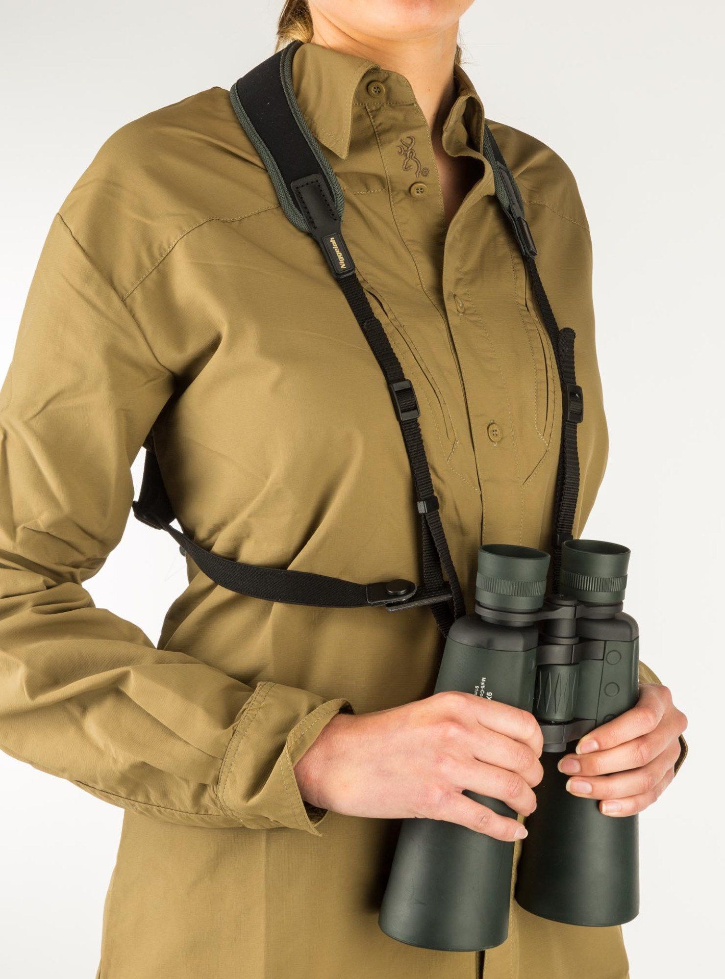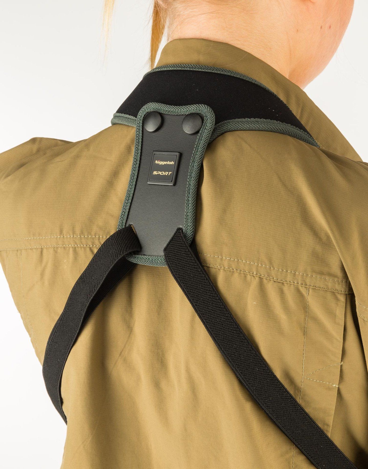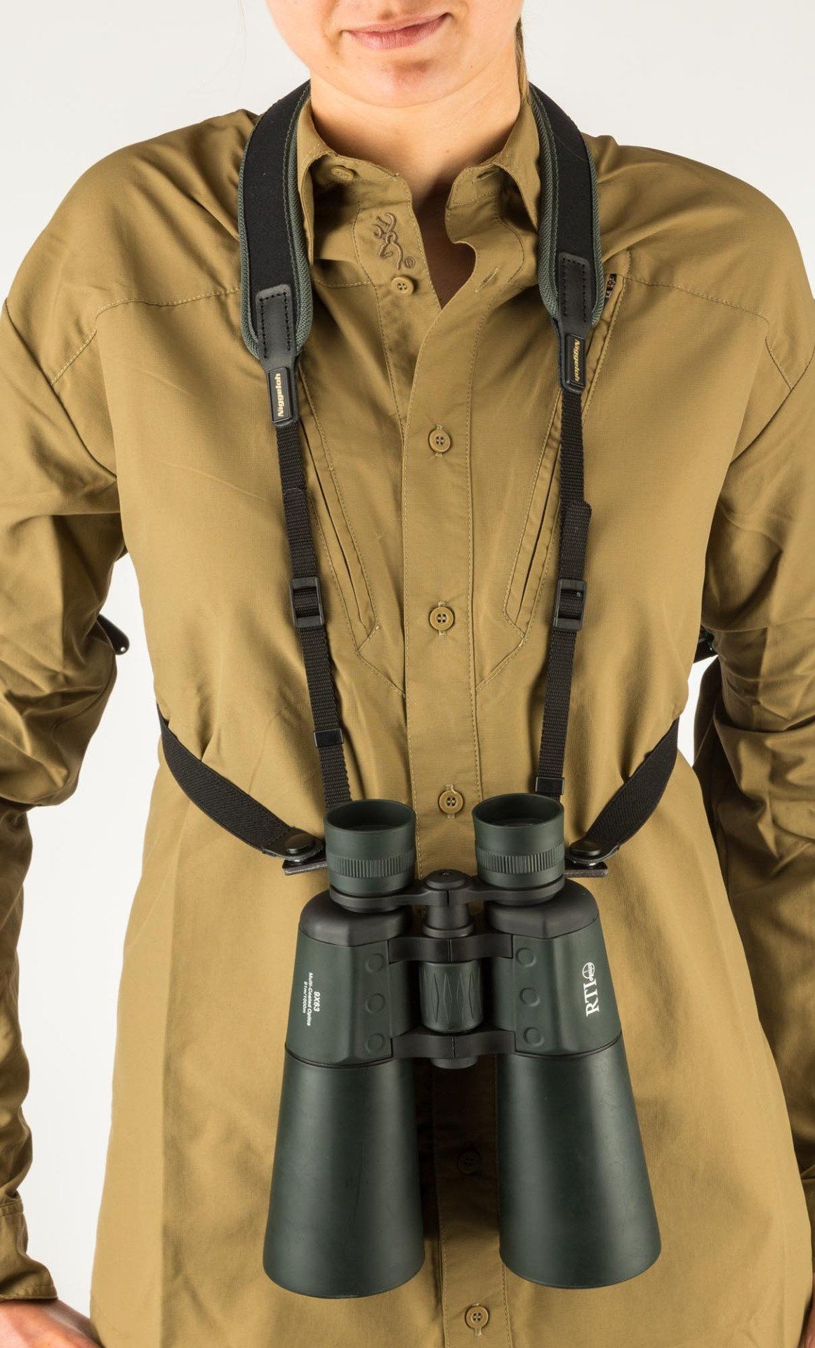 HARNAIS pour jumelles - Niggeloh Permet de conserver vos jumelles à portée de main lors de promenade ou randonnée en forêt. Ce harnais est très apprécié pour le confort qu'il apporte à son utilisateur. La répartition de la charge est faite sur les épaules et le dos et non pas sur la nuque et les cervicales. Les jumelles restent fixes et ne se balancent pas de droite à gauche lors des déplacements de l'utilisateur.