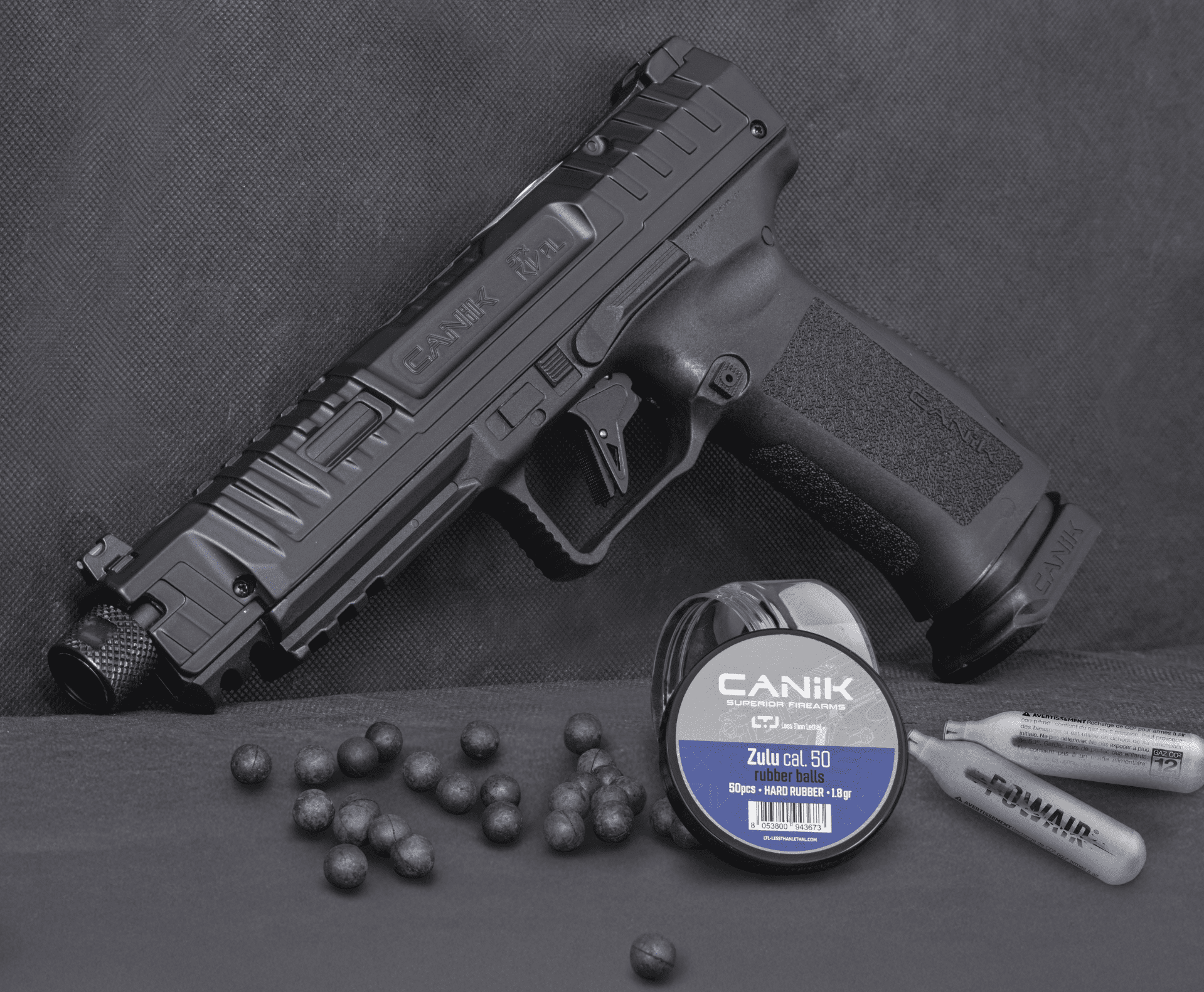 Le CANIK RIVAL Livré avec 50 billes Caoutchouc est une arme de défense aussi pratique qu’efficace.